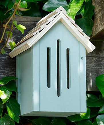 Invite butterflies to your garden with this charming green butterfly barn. Three front slots mimic natural bark crevices where butterflies love to hide, while an unlockable side panel lets you add twigs and leaves for extra cozy spots. A delightful way to attract these beauties and brighten your outdoor space.