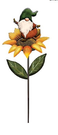 This Gnome on Sunflower Stake is a whimsical and adorable addition to your garden or outdoor space. Standing at 41" tall, its brightly-colored sunflower will bring a pop of color to your yard. This durable product is built from heavy-duty materials to ensure lasting appeal.
