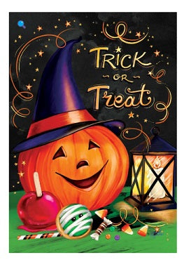 Say "Trick or Treat" with one of our eye-catching Double-Sided Flags, printed right here in the USA. Special fade-resistant ink ensures a bright, vivid design, which stands out against the luxurious velvety soft heavyweight fabric to create an exquisite drape. Artist Designed!