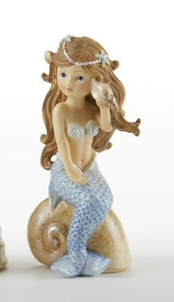 Pastel Blue Mermaid setting on Shells Approx 4+ Inches tall. Made of Resin