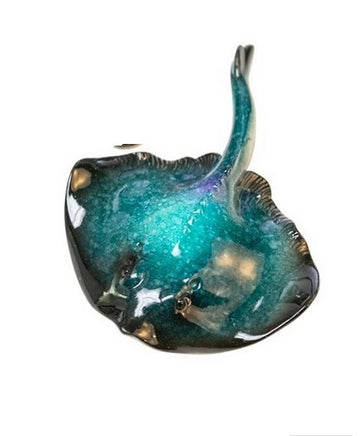 This Brilliant Blue Polystone Sting Ray is Very Detailed and Makes a Striking Undersea Creature Decorative Accessory – A Unique Addition to a Nautical Vignette of Ocean Life.